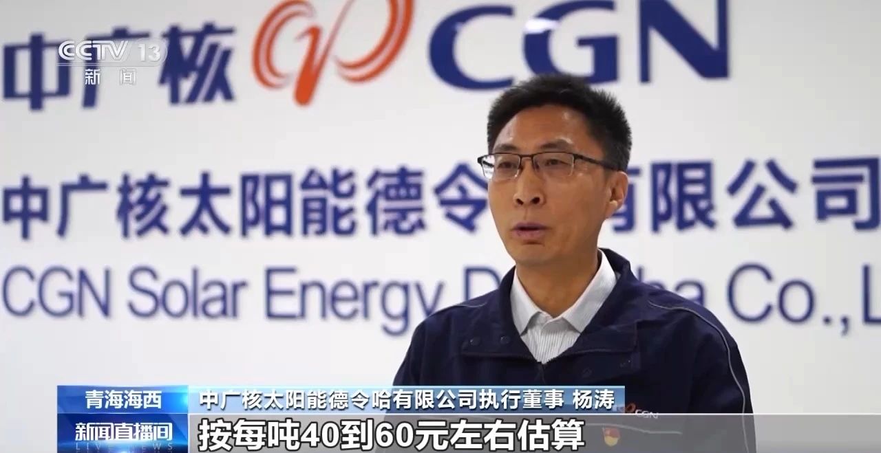 中廣核太陽能德令哈有限公司執行董事 楊濤:拿本項目來說,每年可產生減排量約8萬噸,按每噸40到60元左右估算,每年可增加收入約300到500萬元。