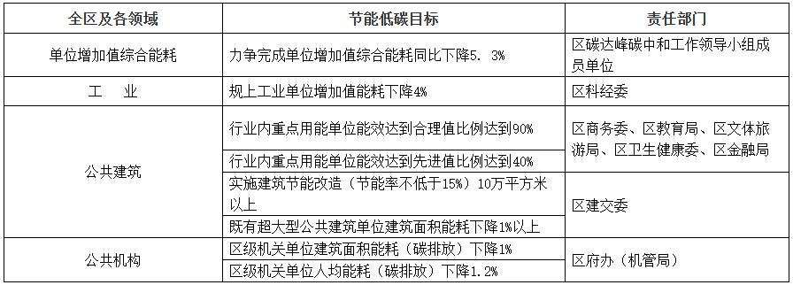 2024年新區碳達峰碳中和及節能降碳計劃目標是:力爭完成市下達的新區單位增加值能耗(考核口徑[1])同比下降5.3%的目標任務,完成市下達的產業結構調整、節能技改、建筑節能、公共機構節能等重點領域工作任務。