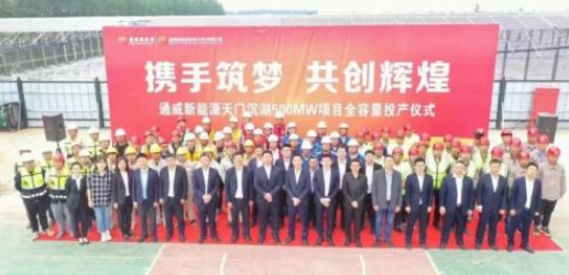 天門項目是通威新能源首個500MW級基地項目,年均發(fā)電量可達6億度,年均減少碳排放52.3萬噸。2022年6月,一期100MW項目并網(wǎng)發(fā)電。同年9月20日,二期400MW項目正式開工,期間,通威新能源始終秉承“風清氣正,打造精品工程”的建設理念,科學規(guī)劃、精心組織、搶抓進度,保障工程質(zhì)量和進度,全力打造優(yōu)質(zhì)精品工程。二期項目從正式開工建設到建成投產(chǎn)僅用時7個月,跑出了“通威加速度”。