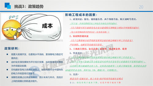 與往年不同的是,雖然我們在“十三五”期間也有系統成本和非系統成本的因素,但是今年光伏系統成本有逐漸上升的趨勢,如更高電壓等級的配電站建設費用、跨省特高壓輸送中省內發電設施建設費用、配置儲能設施費用等建設成本在不斷增加。更重要的是光伏組件的價格和安裝成本,目前組件成本占到系統成本的50%左右,所以組件價格還是決定這個項目生死非常關鍵的因素。