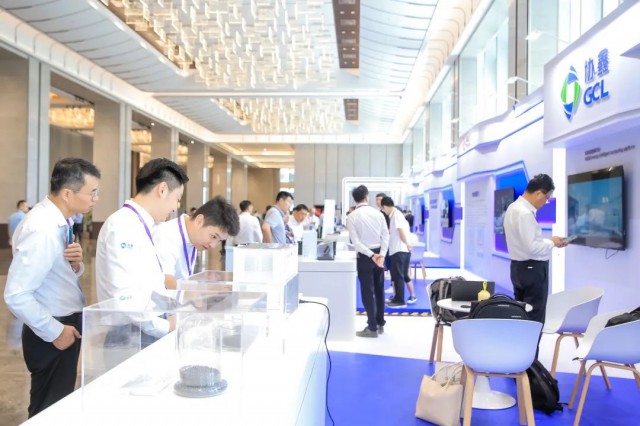 應主辦方安排,協鑫集團在會場外特設協鑫展臺,重磅呈現“數字能源智算平臺”“下一代光伏組件”“光儲融會”和顆粒硅、GCL-PHY磷酸鐵鋰、硅酸負極材料、智能組串式儲能系統等“黑科技”實物矩陣,吸引了眾多與會者駐足觀看。