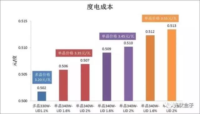 1、如單晶組件每瓦的價格比多晶組件高0.15元/瓦, 單晶系統每瓦投資比多晶高0.108元,單晶系統的平準化度電成本比多晶系統高0.013元/度。多晶系統初始投資低,度電成本更低,投資回報率更高。
