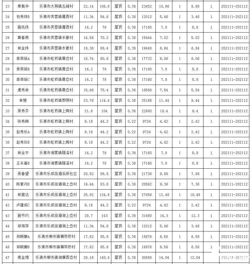 附件:樂清市2021年第二十三批居民家庭屋頂分布式光伏發電項目表