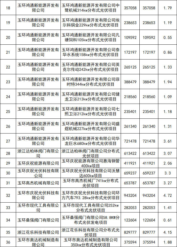 11月9日,玉環市人民政府關于撥付2021年節能技改項目、分布式光伏項目專項資金的公示,其中2021年分布式光伏項目獎勵資金達到85.17萬元。