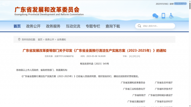 《廣東省全面推行清潔生產實施方案(2023-2025年)》已經省人民政府同意,現印發給你們,請結合實際抓好貫徹落實。