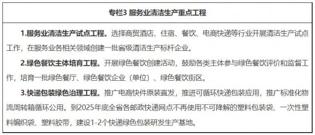 11.加強塑料污染綜合治理。餐飲、娛樂、住宿、倉儲、批發、零售等服務性企業要堅持清潔生產理念,改善服務規程,減少一次性物品的使用。推進賓館、酒店、民宿等場所不再主動提供一次性塑料用品工作。推動電子商務、外賣、快遞等行業包裝減量與可降解包裝替代、包裝物循環利用,逐步減少使用一次性不可降解塑料包裝袋、膠帶和一次性塑料編織袋,全面推廣使用電子運單。推廣應用塑料替代產品,使用環保布袋、紙袋等非塑制品和可降解購物袋。實施一次性塑料制品使用、回收情況報告制度,督促指導電子商務、外賣等平臺企業和快遞企業按照國家要求制定一次性塑料制品減量規則。充分發揮各類各級公共機構示范帶動作用,帶頭減少使用一次性塑料制品。