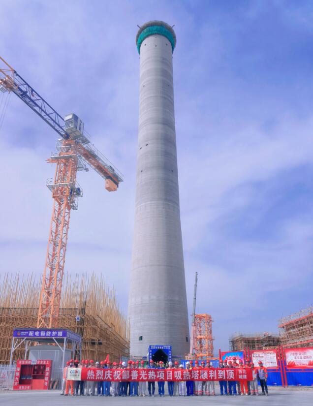 5月7日,中國能建西北城建承建的新疆鄯善100兆瓦光熱發電項目吸熱塔順利到頂。