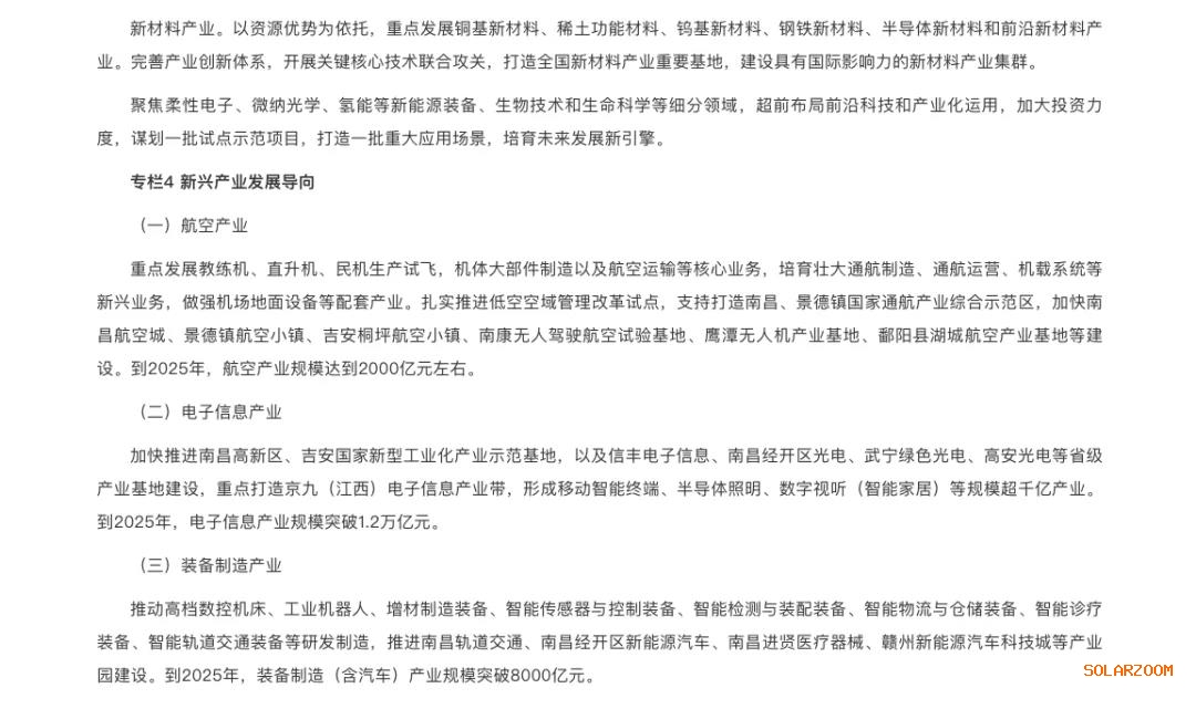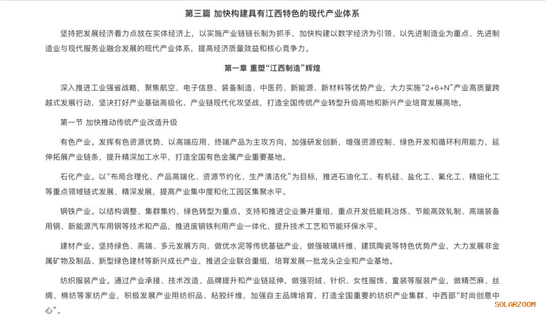 提升贛東北開放合作水平,提升“兩光一車”(光伏、光學、汽車)產業發展水平,打造全國光伏光學產業基地。加快贛西轉型升級步伐,支持新余推進鋼鐵、鋰電、硅灰石、光伏、電子信息等產業集群發展,打造中部地區新型工業強市、國家新能源科技示范城。