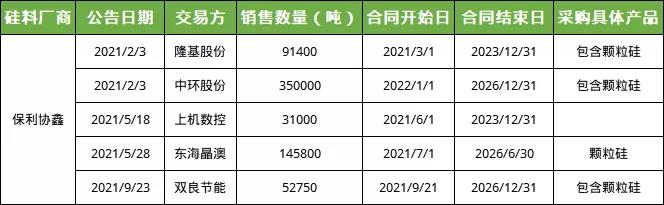 保利協(xié)鑫與晶澳簽訂顆粒硅采購(gòu)長(zhǎng)單:晶澳將于未來(lái)5年向協(xié)鑫采購(gòu)總計(jì)14.58萬(wàn)噸顆粒硅,顆粒硅進(jìn)一步獲得下游客戶的認(rèn)可。