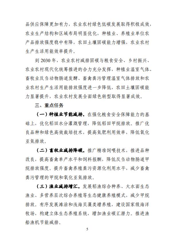 6月30日,農業農村部國家發展改革委發布了《農業農村減排固碳實施方案》,為貫徹落實碳達峰碳中和重大決策部署,推進農業農村綠色低碳發展,農業農村部、國家發改委制定了《農業農村減排固碳實施方案》,方案指出6大任務,10大行動。