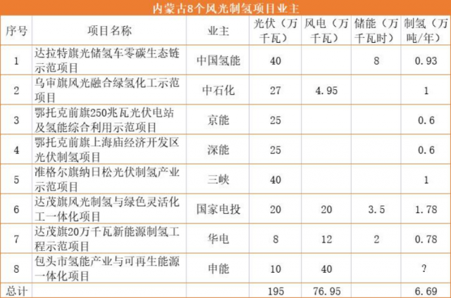 根據項目及資料查詢顯示,上述項目的主要投資業主分別為中國氫能、中石化、京能、深能、三峽、國家電投、華電以及申能等企業。具體項目情況見下: