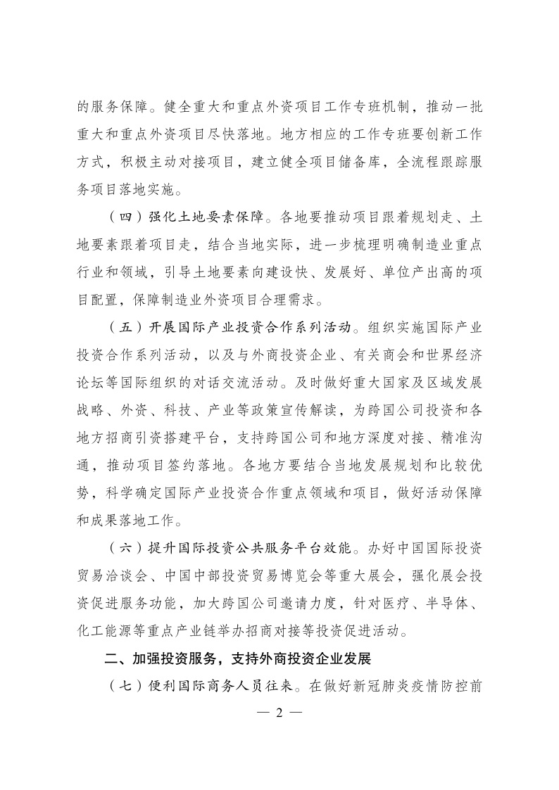 促進(jìn)外資擴(kuò)增量穩(wěn)存量提質(zhì)量的若干政策措施》的通知