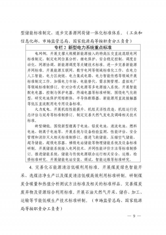 在重點領域碳減排標準方面,重點是完善節能、新能源和可再生能源、新型電力系統、化石能源清潔低碳利用、工業綠色低碳轉型、交通運輸低碳發展、基礎設施低碳升級、農業農村降碳增效、公共機構節能低碳、資源循環利用等10個方面的標準。