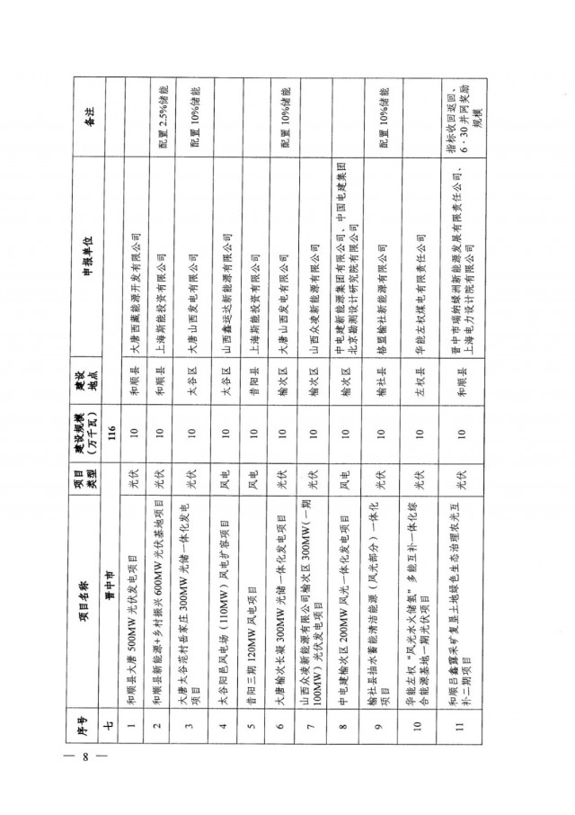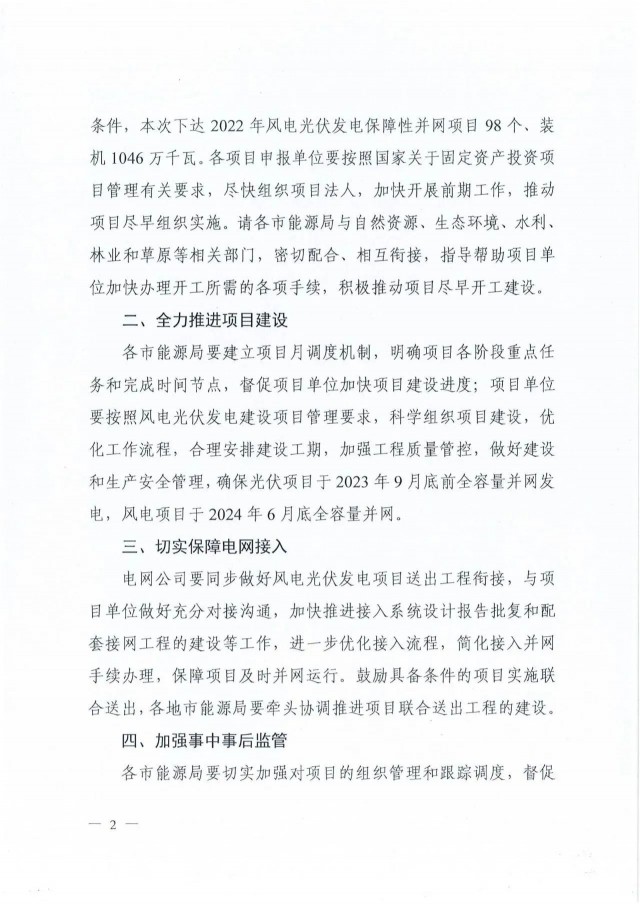 支持新能源產(chǎn)業(yè)發(fā)展項(xiàng)目34個(gè),裝機(jī)372萬(wàn)千瓦(3.72GW)。其中,光伏項(xiàng)目16個(gè),風(fēng)光一體項(xiàng)目1個(gè)(含光伏6萬(wàn)千瓦),涉及光伏項(xiàng)目共197萬(wàn)千瓦(1.97GW)。要求確保項(xiàng)目于2024年12月底全容量并網(wǎng)。