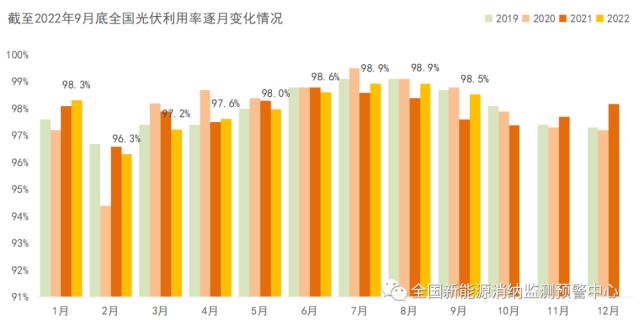 截至9月底全國光伏利用率逐月變化情況