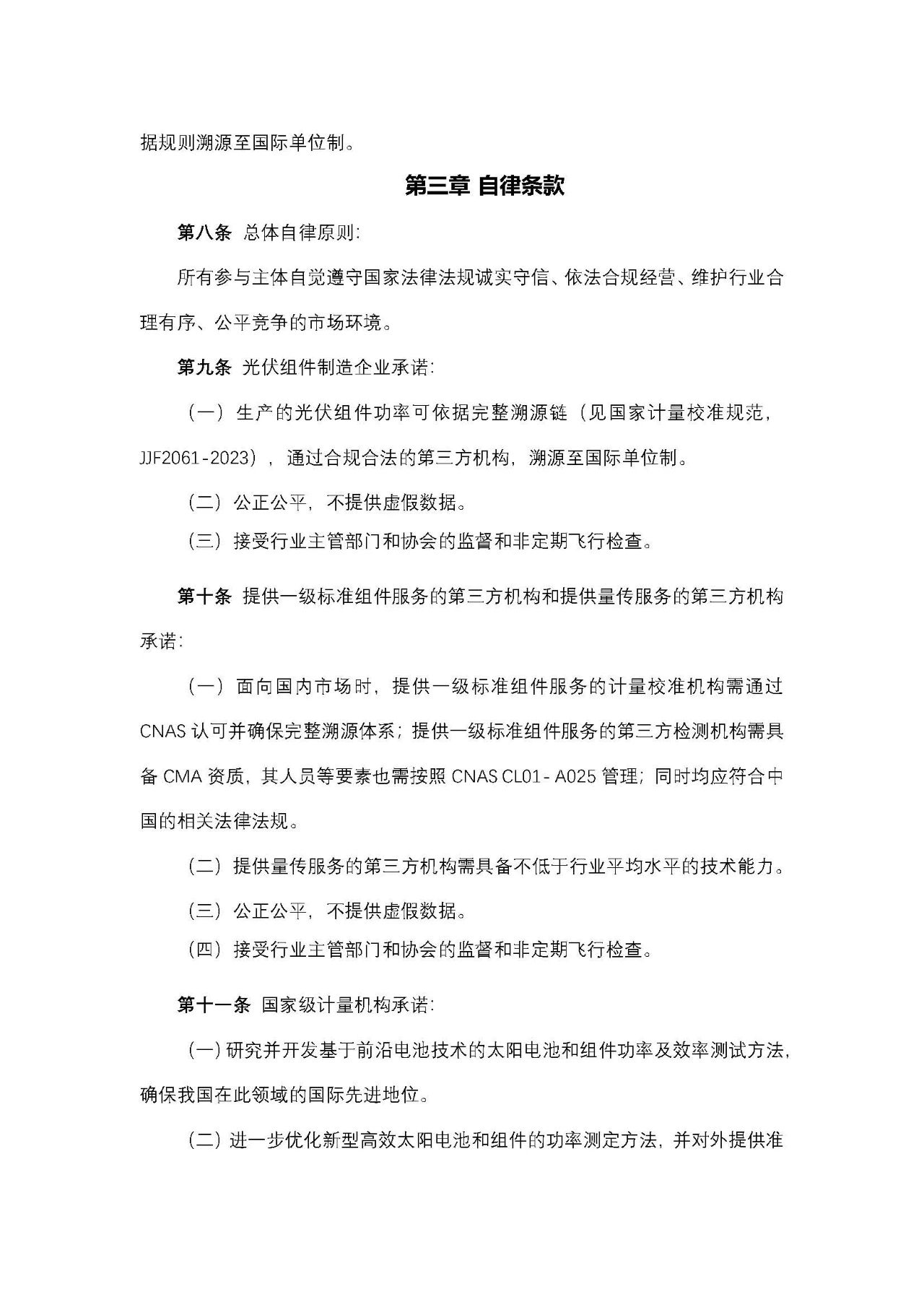 《自律公約》瞄準確保光伏組件功率準確溯源、減小功率標定偏差、減少光伏產品以次充好等目標,引導各方緩解國內外貿易過程中對組件功率數據的分歧,積極促進光伏市場可持續發展,在光伏組件功率標定、傳遞和溯源等方面,對光伏組件制造企業、第三方檢測認證機構、計量機構提出了自律性要求和倡議。