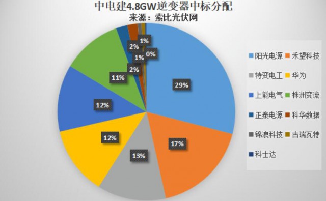 經(jīng)統(tǒng)計,逆變器招標(biāo)規(guī)模超1GW的招標(biāo)企業(yè)有十一家,且均為央企。分別是華電16.35GW、中國電建13.02GW、國家電投12.23GW、大唐10.5GW、中核8GW、中國能建6GW、中石油4.5GW、三峽2.78GW、中廣核2.2GW、中節(jié)能2GW、華潤1.985GW。