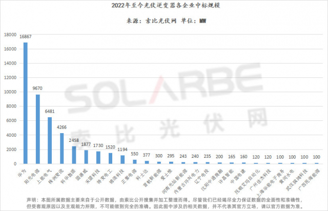 除已經(jīng)公開中標(biāo)規(guī)模的逆變器中標(biāo),還有27.8GW公布了入圍情況,其中陽光電源中標(biāo)15個標(biāo)段、上能電氣中標(biāo)10個標(biāo)段、科華數(shù)據(jù)、禾望科技中標(biāo)各9個、特變電工、錦浪科技各8個、科士達(dá)、華為各7個、株洲變流6個。