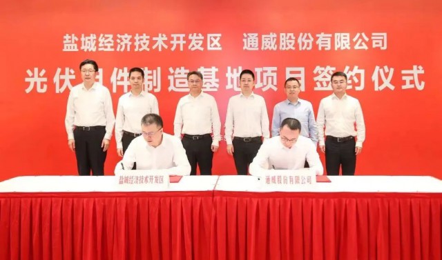 9月22日,通威股份發(fā)布公告,公司擬與鹽城經(jīng)開區(qū)管委會簽署高效光伏組件制造基地項目投資協(xié)議書,擬投建25GW高效光伏組件制造基地項目,建設周期為24個月,預計固定資產(chǎn)投資額約為40億元。