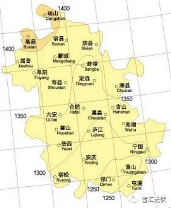 根據中國氣象局數據,2022年,安徽省全境平均水平面年總輻射量為1502.8kWh/㎡,最佳傾角總輻射量為1636kWh/㎡。若按照82%的系統效率計算,首年年利用小時數可達1340小時。