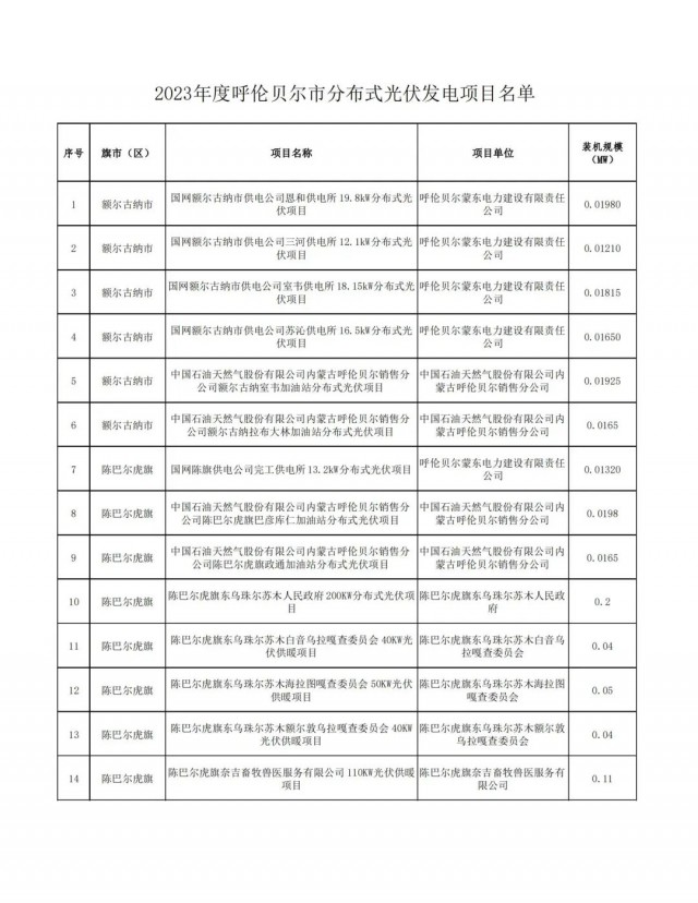 2.2023年度呼倫貝爾市分布式光伏發電項目名單