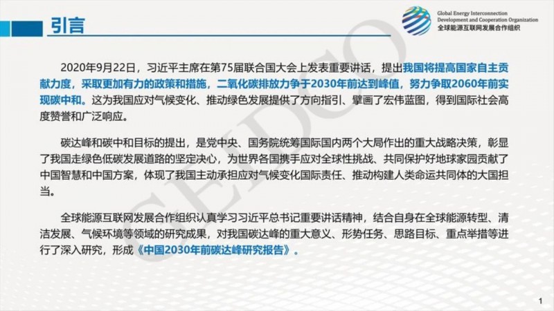2021年3月18日,全球能源互聯網發展合作組織在北京舉行“中國碳達峰碳中和成果發布暨研討會”,并重磅發布三份高質量研究報告《中國2060年前碳中和研究報告》、《中國2030年前碳達峰研究報告》、《中國2030年能源電力發展規劃研究及2060年展望》。