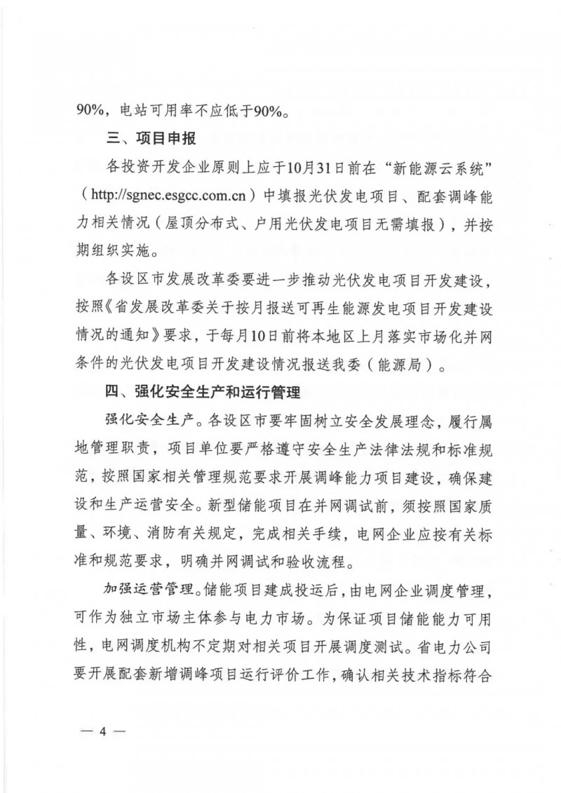 此外,文件要求各投資開發企業原則上應于10月31日前在“新能源云系統”中填報光伏發電項目、配套調峰能力相關情況。2021年落實的市場化項目原則上應于2023年6月底建成并網;配套調峰能力原則上應為2021年1月1日以后投產的項目,應與光伏發電項目同步建成、同步并網。