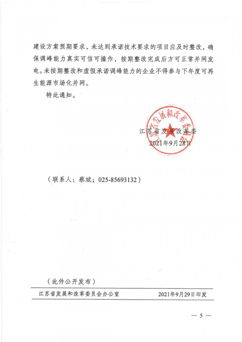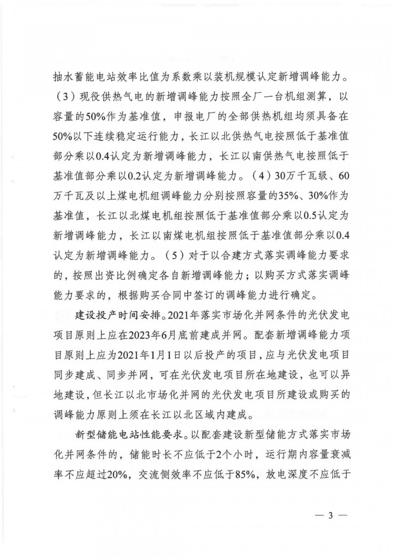 根據文件,2021年江蘇省長江以南地區新建光伏發電項目原則上按照功率8%及以上比例配建調峰能力(時長2小時,下同),長江以北地區原則上按照功率10%及以上比例配建調峰能力;調峰能力超過規定比例的,剩余部分可在江蘇省范圍內統籌并通過市場化方式交易給其他發電企業。