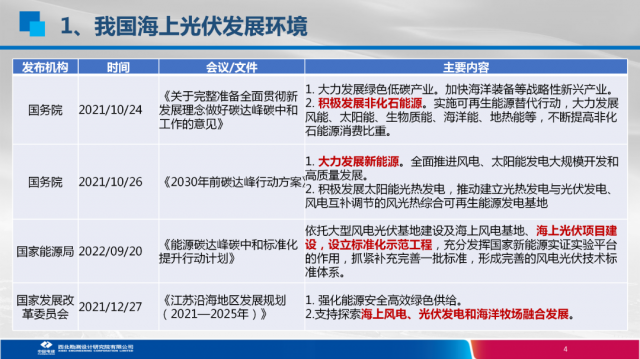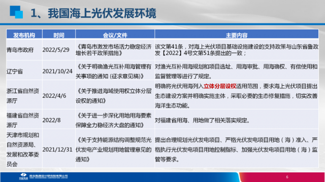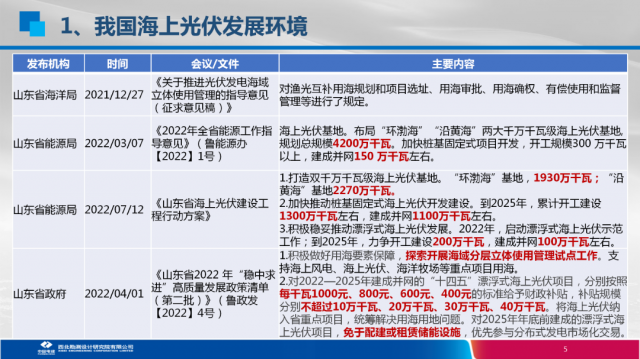 近年,隨著新能源裝機需求的增長及雙碳目標提出,山東、浙江、江蘇、福建等多個東部沿海省份由于土地稀缺,均加快布局海上光伏建設,陸續出臺支持海上光伏發展的相關政策。除了分布式、大基地、海上正成為光伏應用的重要場景和爭奪重點。