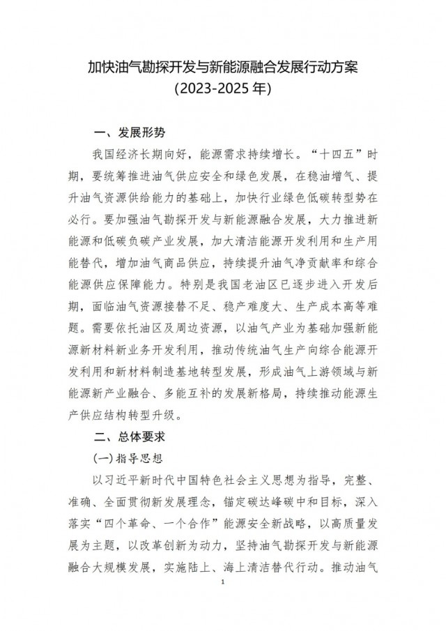 附件:加快油氣勘探開發與新能源融合發展行動方案(2023-2025年)