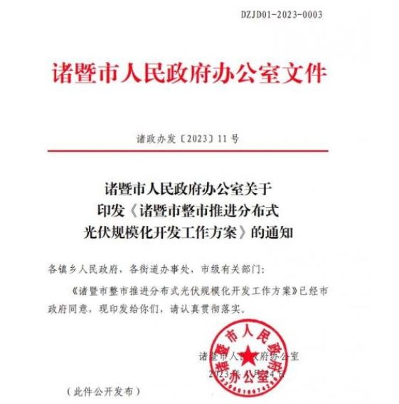 諸暨市整市推進分布式光伏規模化開發工作方案