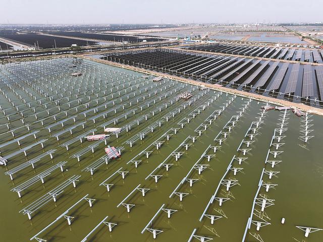 據了解,該項目總裝機容量為276兆瓦,占地面積8500余畝,充分利用漁塘水域面積,將光伏發電和漁業養殖有機結合起來,實現土地資源的高效利用和生態開發。