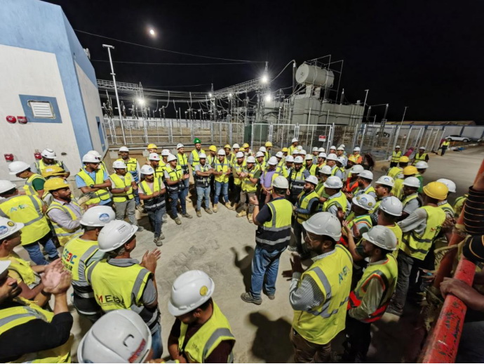 為確保倒送電工作順利完成,項目部科學組織、精心策劃,積極協調業主方、民防局和埃及電網公司等相關單位,按照時序計劃,逐步驗收,特別是在倒送電開始前,對相關部門專業人員進行全面的安全與技術交底,嚴格執行倒送電調試措施。在項目業主和埃及電網公司相關負責人的見證下,整個受電過程順利、可控且受電后各系統設備運行正常,參數準確無誤。