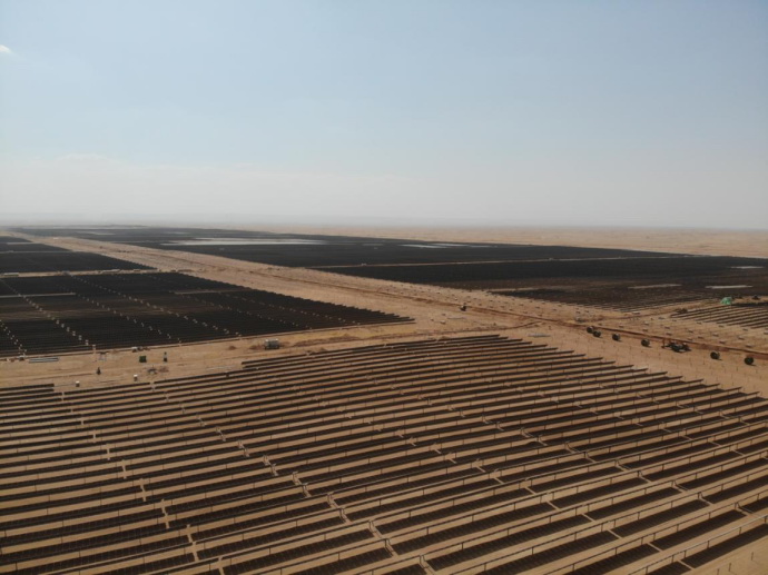 康翁波500兆瓦光伏項目是中國能建在埃及簽約額最大的EPC總承包項目,項目位于南部阿斯旺市西北約60公里的康翁波鎮附近沙漠地帶,占地約10平方公里,光伏場區直流裝機容量560兆瓦,配套新建220千伏升壓站1座。該項目的實施將進一步提升埃及可再生能源發電量占比,助力當地能源供應體系向清潔低碳轉型升級,并為當地經濟發展提供電力保障。(程公輝)