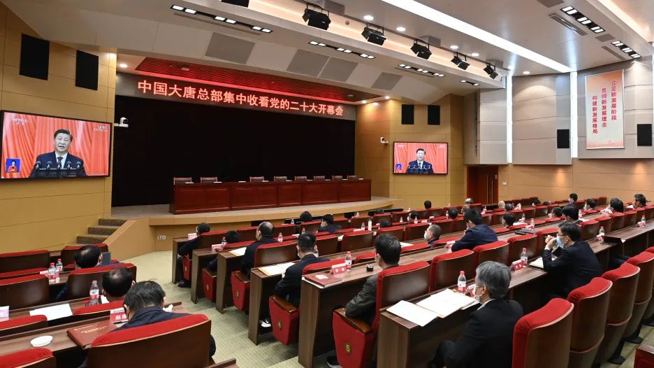 中國大唐黨員干部群眾早早端坐在屏幕前,懷著激動(dòng)的心情,收聽收看黨的二十大開幕會(huì),認(rèn)真聆聽習(xí)近平總書記所作的報(bào)告。集團(tuán)公司領(lǐng)導(dǎo)劉明勝、時(shí)家林、王瑛、曲波、張傳江、彭勇、陶云鵬和總部副經(jīng)理級(jí)及以上干部分別在總部3個(gè)會(huì)場(chǎng),系統(tǒng)31991名黨員干部職工在全國1873個(gè)會(huì)場(chǎng)集中收看開幕會(huì)盛況。