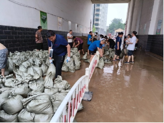 二勘局華誼物業公司黨總支搶險救援突擊隊為在京涿各住宅項目部關鍵部位配備防汛沙袋700余個,最大限度降低洪災造成的危害;冒雨為北京福慧嘉苑小區抽排積水、搶修自來水供水管道。