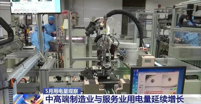 從各地亮眼的用電量數據中,記者還發現,今年我國在中高端制造業與服務業的用電量都有顯著的增長,5月份,高技術及裝備制造業、服務業用電量增長均高于全社會用電量。