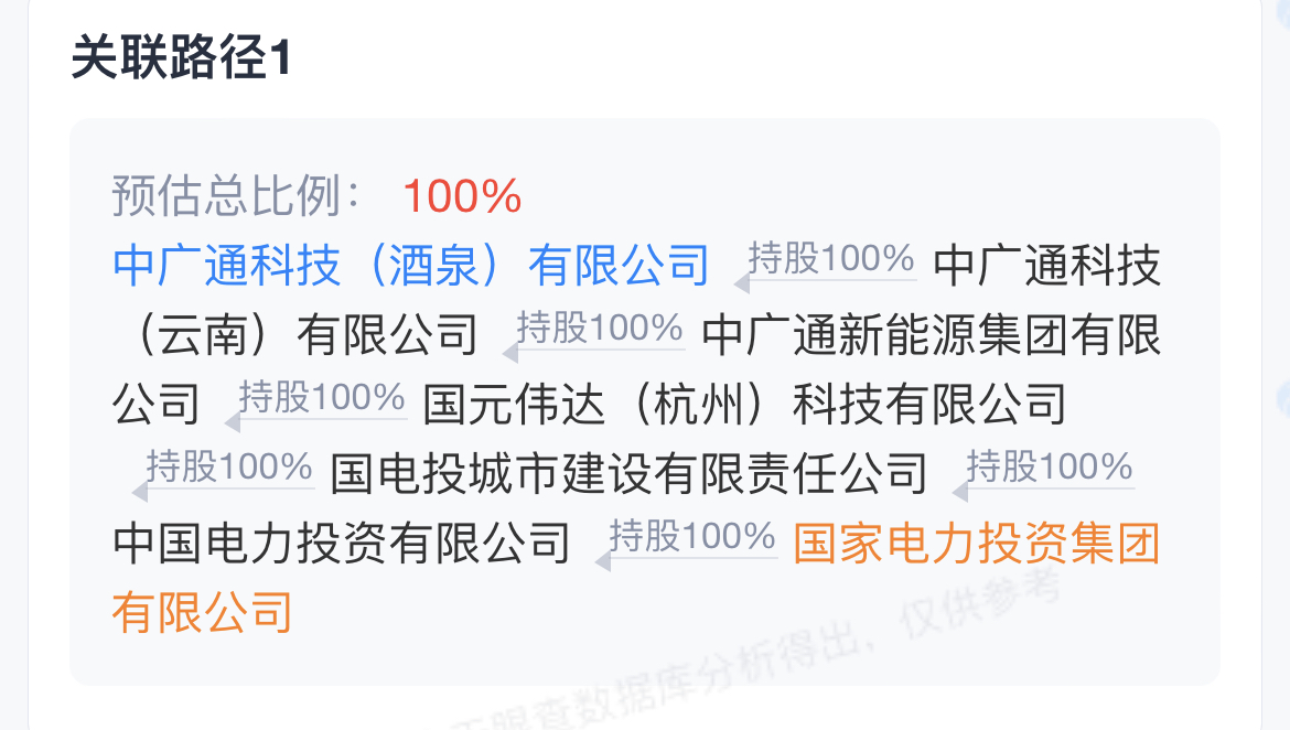 據天眼查,追溯其股權結構,中廣通科技酒泉公司為國家電力投資集團有限公司全資控股的七級子公司。國家電投集團是全球最大的清潔能源發電企業、國內五大發電央企之一。