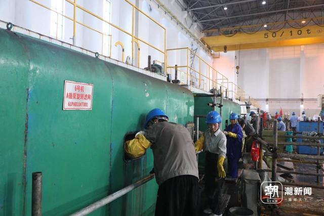 夜晚,反而留下的技術(shù)人員更多了,他們要在崗位上駐守,以防隨著潮汐變化,海蜇再一次出現(xiàn)井噴量,導(dǎo)致機(jī)器過(guò)載發(fā)生故障,他們要及時(shí)修理保障常規(guī)發(fā)電量。