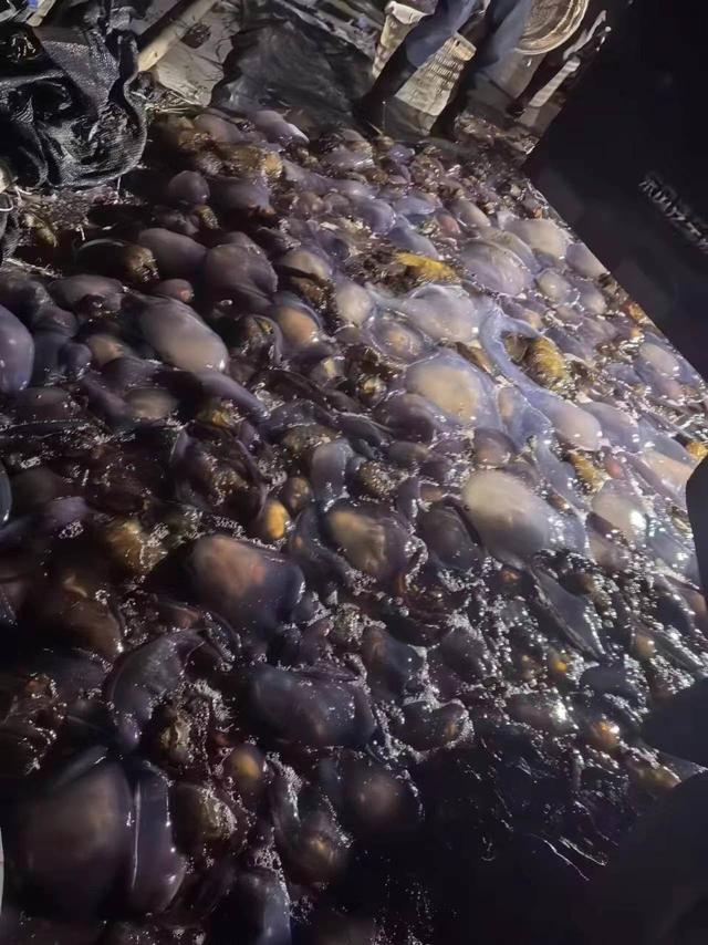海蜇多到什么程度?9月18日到9月25日,已累計(jì)抓了約5250袋、21萬(wàn)斤的海蜇。