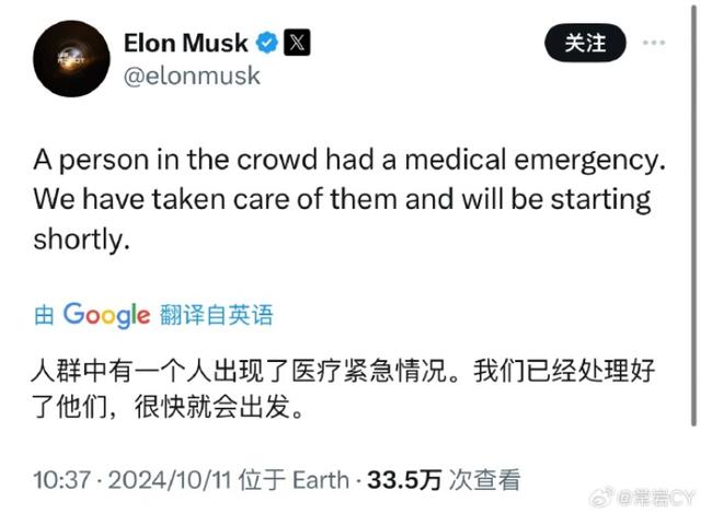 10:32 在活動現場有人暈倒。馬斯克在推特上回復稱,由于有人需要緊急醫療,特斯拉將在開場之前先照顧他們。