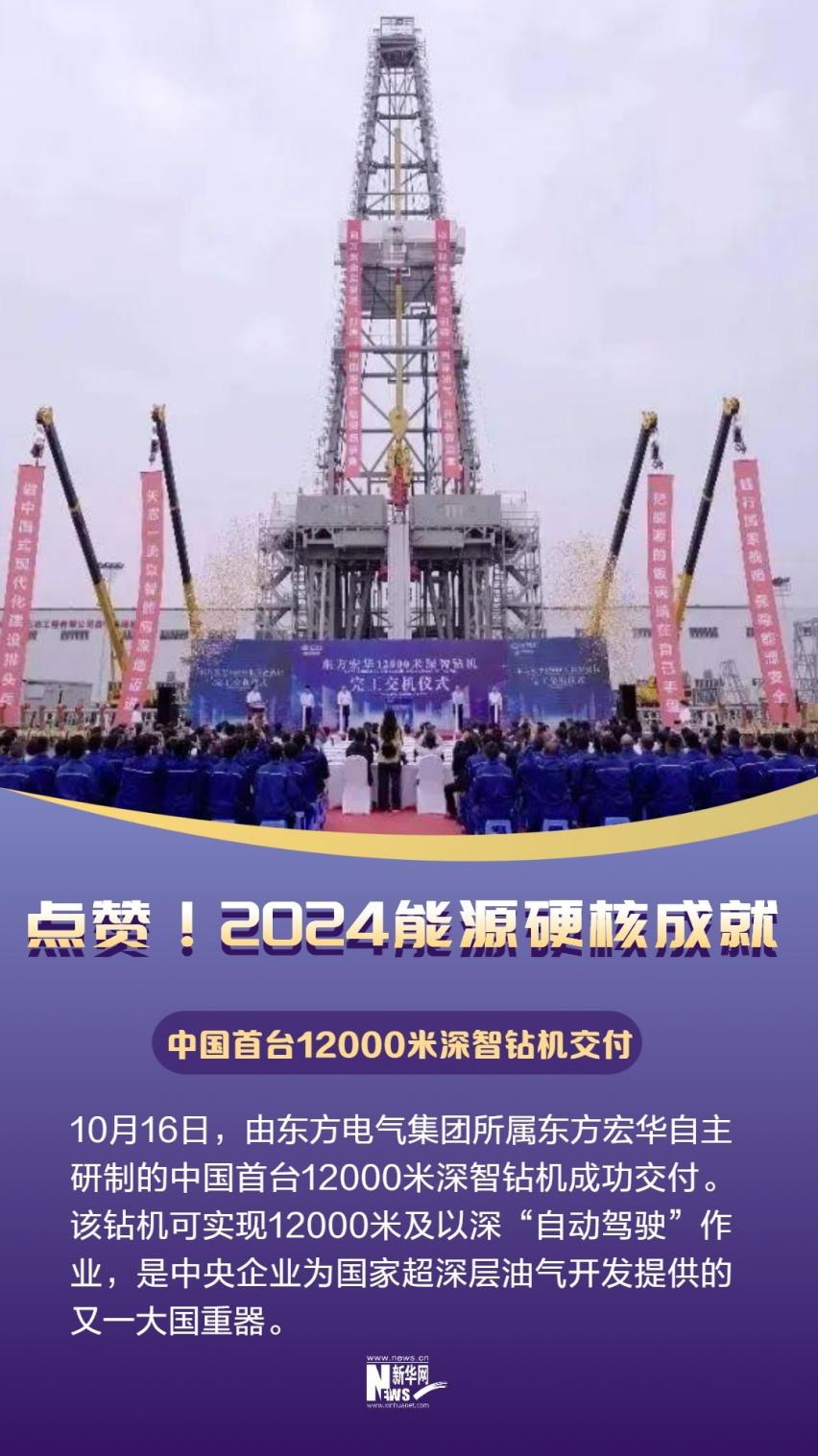 10月16日,由東方電氣集團所屬東方宏華自主研制的中國首臺12000米深智鉆機成功交付。該鉆機可實現12000米及以深“自動駕駛”作業,是中央企業為國家超深層油氣開發提供的又一大國重器。