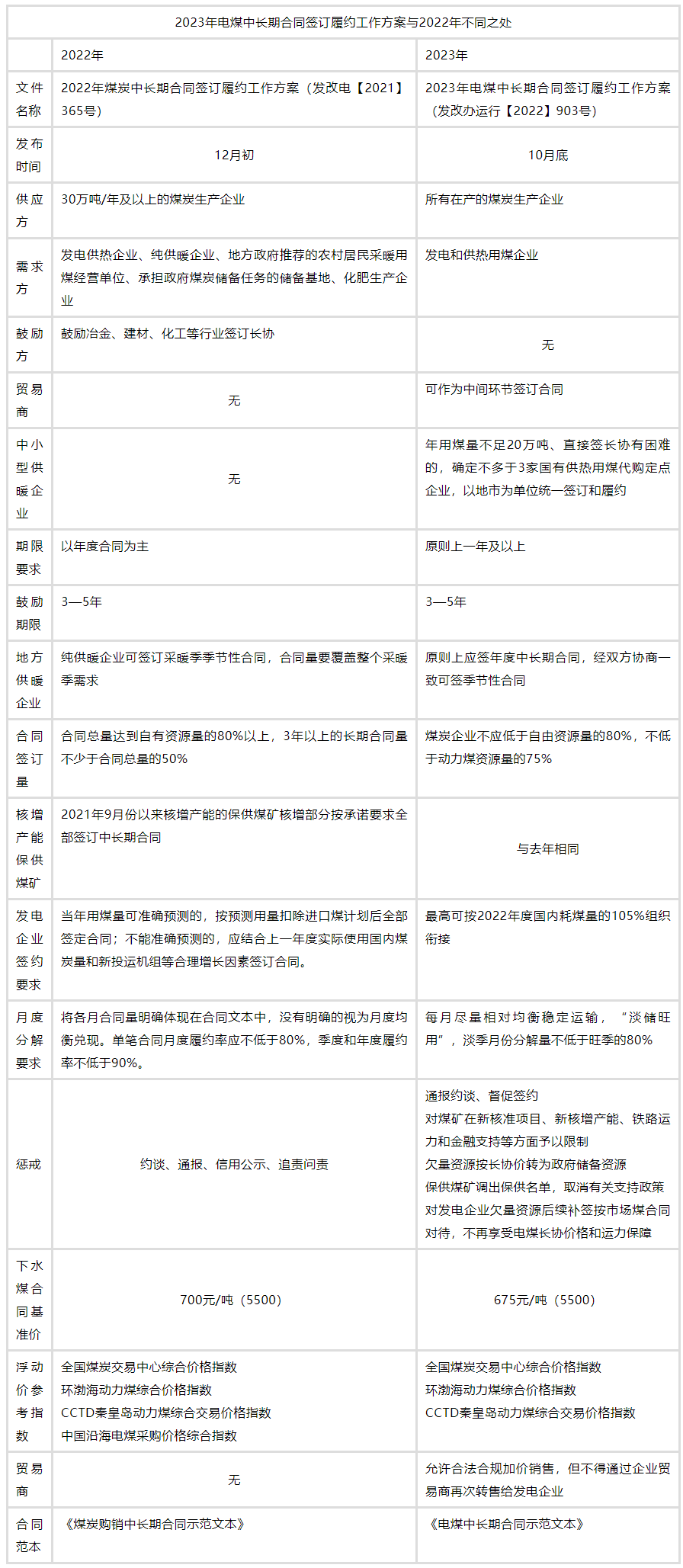 2023年電煤中長期合同簽訂履約工作方案與2022年不同之處