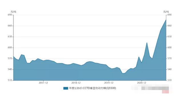 下圖是秦皇島5500大卡動力煤長協價。