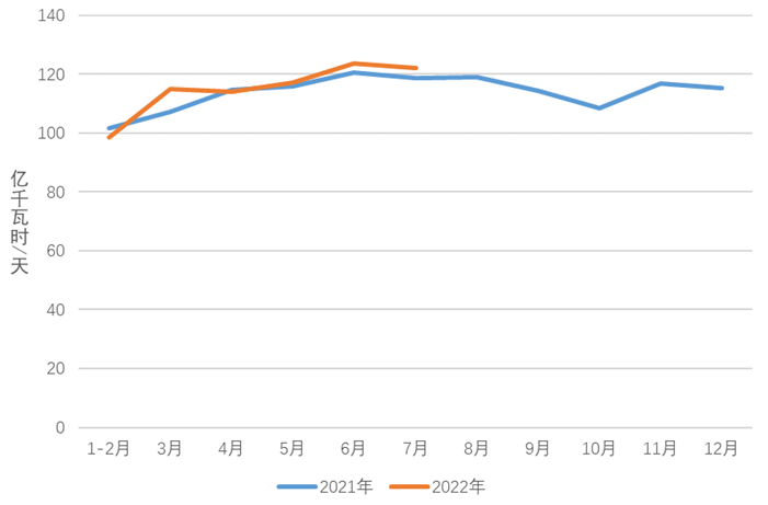 1-7月,化工行業(yè)用電量3168億千瓦時,同比增長5.2%;建材行業(yè)用電量2243億千瓦時,同比下降4.4%;黑色金屬冶煉行業(yè)用電量3619億千瓦時,同比下降4.3%;有色金屬冶煉行業(yè)用電量4267億千瓦時,同比增長2.5%。