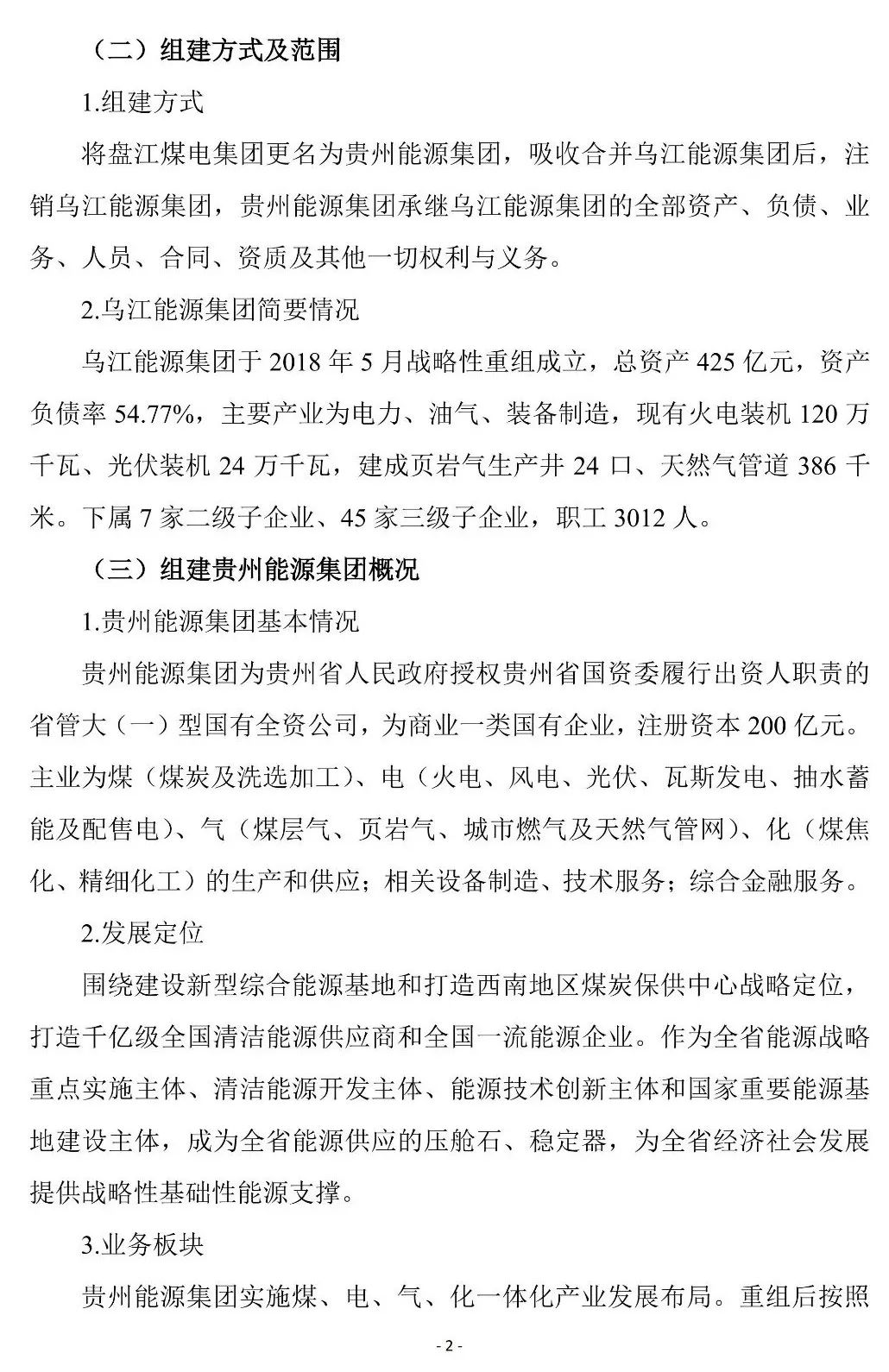 目前,貴州能源集團正按批復的組建方案有序組建,吸收合并、業務整合、工商變更登記等工作有序開展。