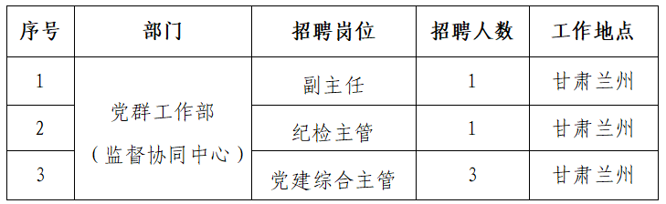 自成立以來,甘肅公司高度重視人才培養工作,為員工搭建了廣闊的發展平臺,著力于公司和員工共同成長,現根據公司發展需要,面向社會公開招聘部分崗位工作人員,具體事項公告如下:
