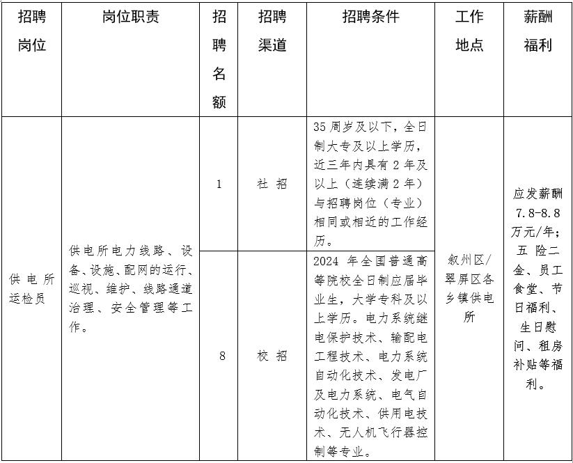 1.專業、學歷以及工作履歷等各項基本條件應滿足四川能投宜賓市敘州電力有限公司招聘崗位條件的要求。