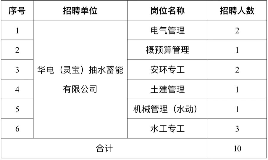 華電(靈寶)抽水蓄能有限公司于2023年12月注冊成立,屬中國華電集團有限公司河南分公司管理,主要負責靈寶抽水蓄能電站項目的開發、建設和運營工作。該項目位于河南省三門峽市靈寶市朱陽鎮境內,裝機容量120萬千瓦。該項目已列入國家能源局《抽水蓄能中長期發展規劃(2021-2035年)》(國能發新能〔2021〕39號)“十四五”重點實施項目,于2024年6月取得河南省發改委核準批復,2025年正式開工建設。根據公司發展需要,現面向華電集團系統內、外公開招聘10人,有關事項公告如下: