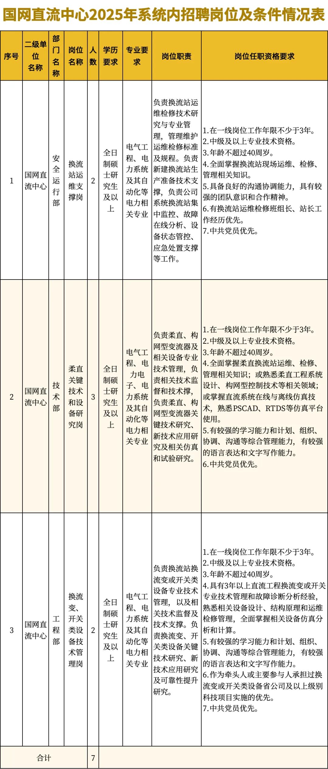 1.國(guó)網(wǎng)直流中心2025年系統(tǒng)內(nèi)公開(kāi)招聘崗位及任職資格情況表